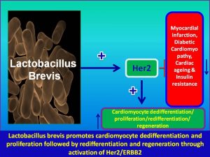 On the foundation of this interesting finding, Dr L Boominathan PhD, Director-cum-chief Scientist of GBMD, reports that: A probiotic way to keep the cardiac diseases at bay: Probiotic Lactobacillus brevis-based Regenerative therapy for regaining the lost cardiomyocytes in Myocardial patients: Probiotic Lactobacillus brevis increases the expression of ERBB2/Her2 and promotes dedifferentiation of cardiomyocytes via down-regulation of its target gene
