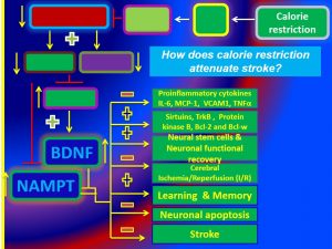 Figure 2. Caloric restriction prevents stroke through induction of Brain-derived growth factor (BDNF) and NAMPT.