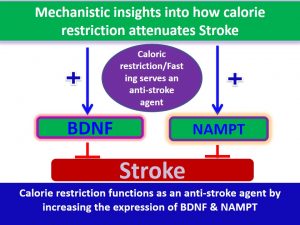 On the foundation of this interesting finding, Dr L Boominathan PhD, Director-cum-chief Scientist of GBMD, reports that: Caloric restriction aids in the treatment of stroke and other neurological deficits: Caloric restriction attenuates hippocampal neurons injury, augments regenerative neurogenesis after Ischemic Stroke, and ameliorates stroke damage and neurological deficits, via up-regulation of its target genes BDNF and NAMPT