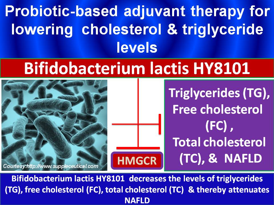 Probiotic-based therapy for lowering cholesterol, and triglycerides levels: Bifidobacterium lactis HY8101 decreases the levels of HMGCR,  triglycerides, free cholesterol, and total cholesterol and prevents the progression of Non-alcoholic fatty liver disease (NAFLD), via up-regulation of its target gene, 18/December/2018, 12.10 am