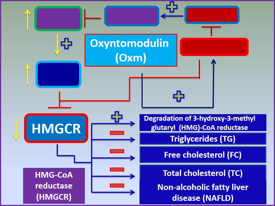 Oxyntomodulin-based therapy for lowering cholesterol, and triglycerides levels: Oxyntomodulin (OXM), a 37 amino acid intestinal peptide that  inhibits food intake and body weight, decreases the levels of HMGCR,  triglycerides, free cholesterol, and total cholesterol and prevents the progression of Non-alcoholic fatty liver disease (NAFLD), via up-regulation of its target gene, 29/April/2019, 2.58 pm