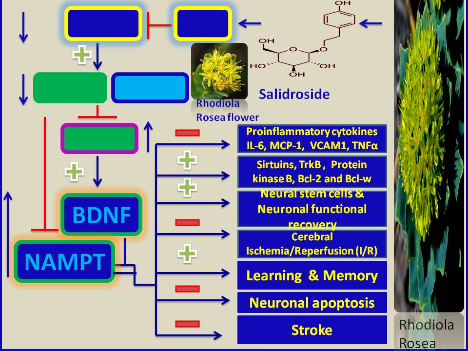 Natural product-derived therapy for Stroke: Salidorside, isolated from Rhodiola Rhosea, attenuates hippocampal neurons injury, augments regenerative neurogenesis after Ischemic Stroke, and ameliorates stroke damage and neurological deficits via up regulation of its target genes BDNF and NAMPT, 6/June/2017, 12.38 am