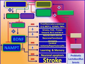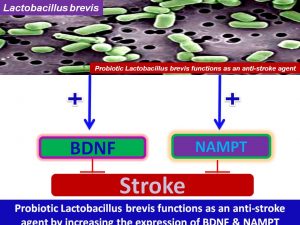 Figure 2. Probiotic lactobacillus brevis prevents stroke through induction of Brain-derived growth factor (BDNF) and NAMPT.
