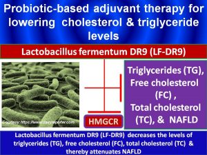 Citation: Boominathan, L., Probiotic-based therapy for lowering cholesterol, and triglycerides levels: Lactobacillus fermentum DR9 (LF-DR9) decreases the levels of HMGCR, triglycerides, free cholesterol, and total cholesterol and prevents the progression of Non-alcoholic fatty liver disease (NAFLD), via up-regulation of its target gene, 17/December/2018, 11.55 pm, Genome-2-BioMedicine Discovery center (GBMD), http://genomediscovery.org