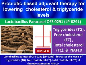 Citation: Boominathan, L., Probiotic-based therapy for lowering cholesterol, and triglycerides levels: Lactobacillus Paracasei OFS 0291 (LP-0291) decreases the levels of HMGCR, triglycerides, free cholesterol, and total cholesterol and prevents the progression of Non-alcoholic fatty liver disease (NAFLD), via up-regulation of its target gene, 5/March/2019, 6.12 pm, Genome-2-BioMedicine Discovery center (GBMD), http://genomediscovery.org