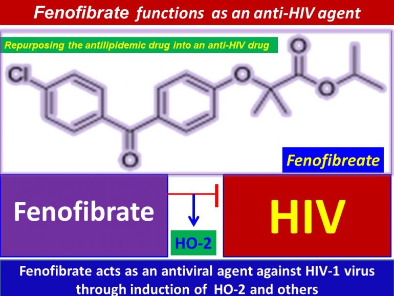 Repurposing the anti-lipidemic agent Fenofibrate into an anti-HIV agent: Fenofibrate  (trade name: Fenoglide, Lipofen, Tricor and others)), an antilipidemic drug, increases Heme oxygenase 2 (HO-2) expression, blocks N-myristoylation of HIV-1 Gag protein, disrupts HIV-1 budding, and restricts HIV-1 production, via upregulation of its target gene, 20/February/2020, 9.39 am
